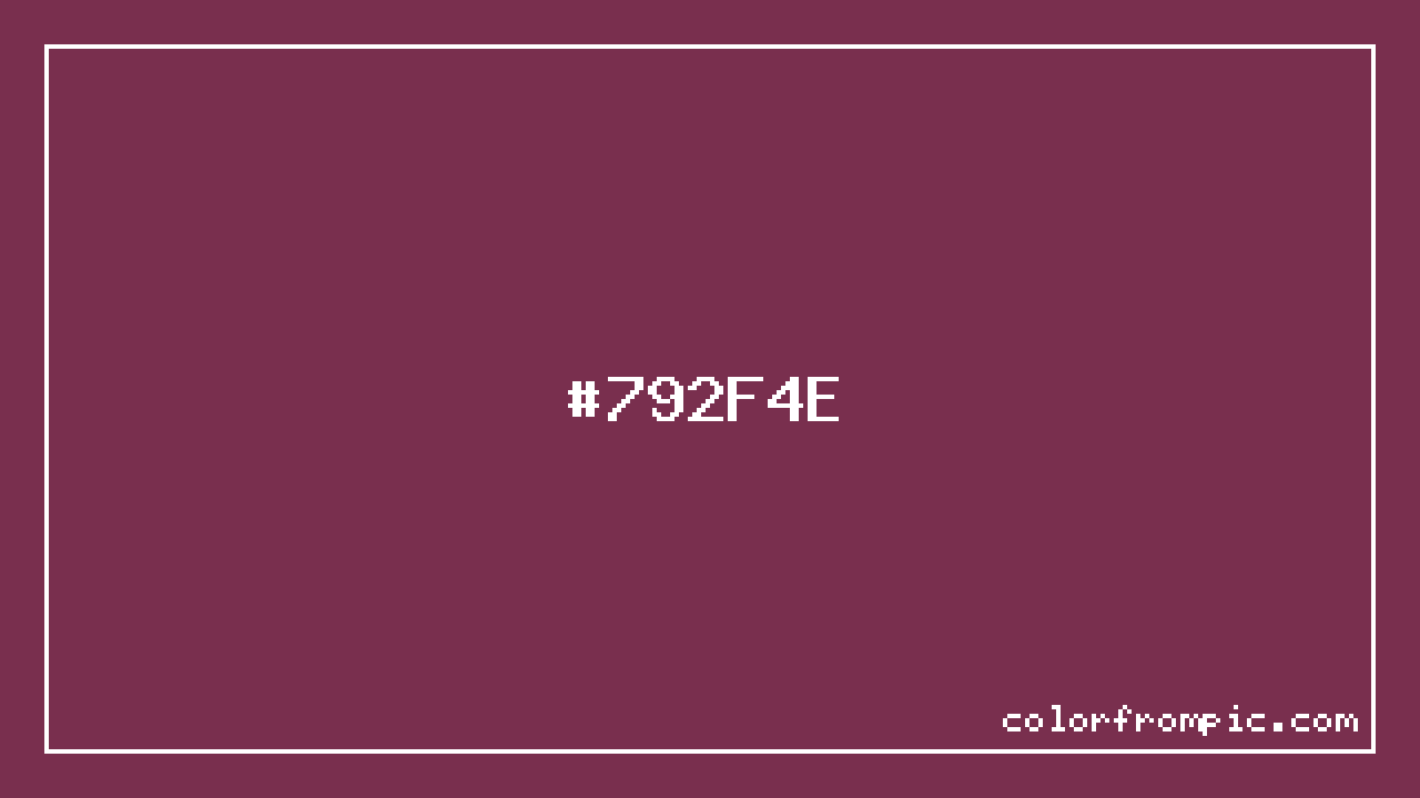 For print applications using the CMYK color model, #792F4E would be reproduced using 0% cyan, 61% magenta, 36% yellow, and 53% black. The closest web-safe color is #663366, which may be useful for ensuring compatibility across older displays and systems.