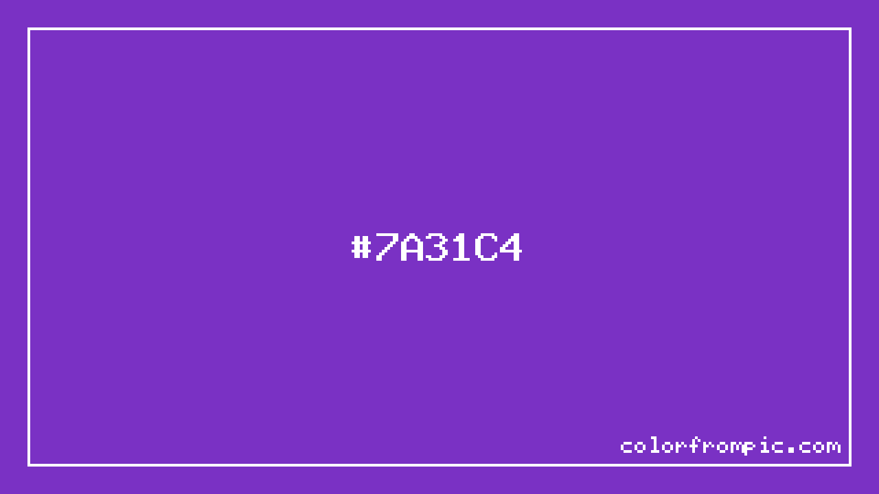 The hexadecimal color code #7A31C4 represents a medium shade in the purple family. In the RGB color model, this color is composed of 122 red, 49 green, and 196 blue, which translates to approximately 48% red, 19% green, and 77% blue. This makes it a moderately saturated color with cool undertones that can evoke different emotional responses depending on its application.