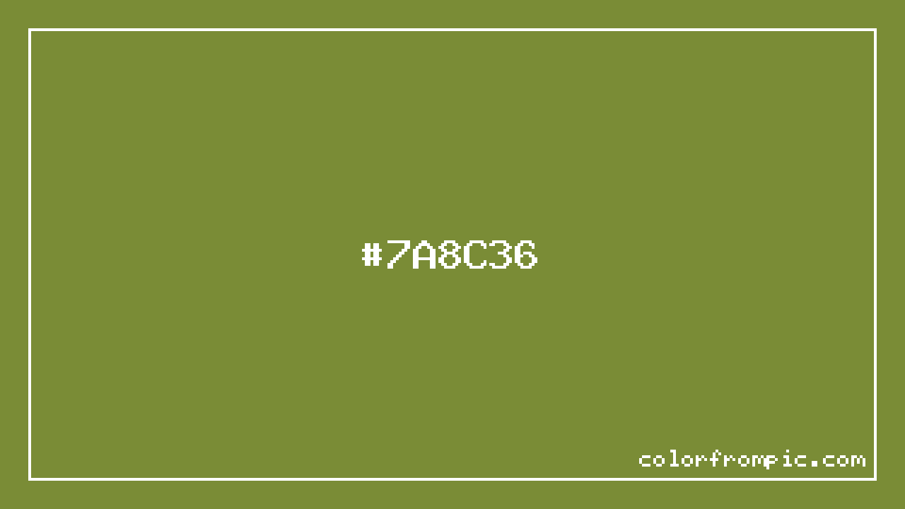 For print applications using the CMYK color model, #7A8C36 would be reproduced using 13% cyan, 0% magenta, 61% yellow, and 45% black. The closest web-safe color is #669933, which may be useful for ensuring compatibility across older displays and systems.