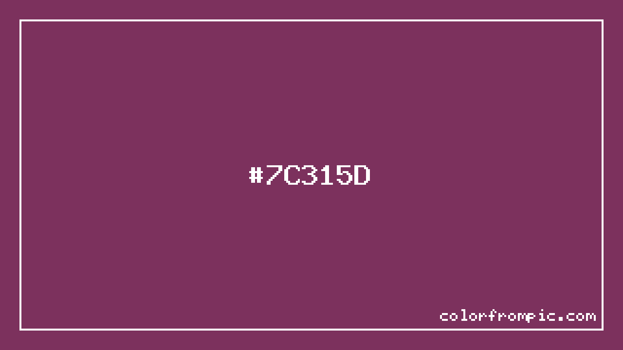 The hexadecimal color code #7C315D represents a dark shade in the purple family. In the RGB color model, this color is composed of 124 red, 49 green, and 93 blue, which translates to approximately 49% red, 19% green, and 36% blue. This makes it a slightly desaturated color with warm undertones that can evoke different emotional responses depending on its application.