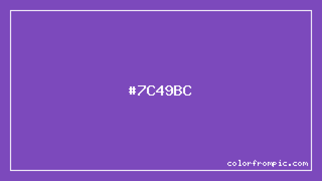For print applications using the CMYK color model, #7C49BC would be reproduced using 34% cyan, 61% magenta, 0% yellow, and 26% black. The closest web-safe color is #6633CC, which may be useful for ensuring compatibility across older displays and systems.