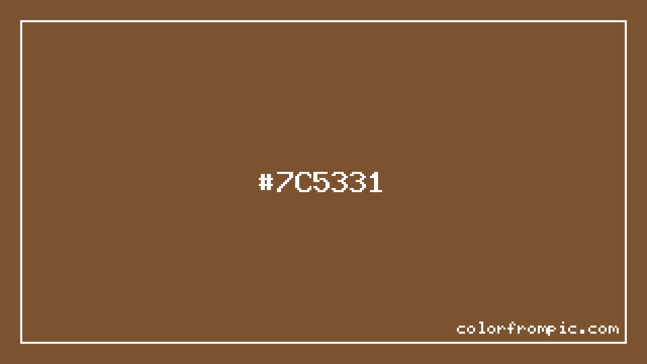 For print applications using the CMYK color model, #7C5331 would be reproduced using 0% cyan, 33% magenta, 60% yellow, and 51% black. The closest web-safe color is #666633, which may be useful for ensuring compatibility across older displays and systems.