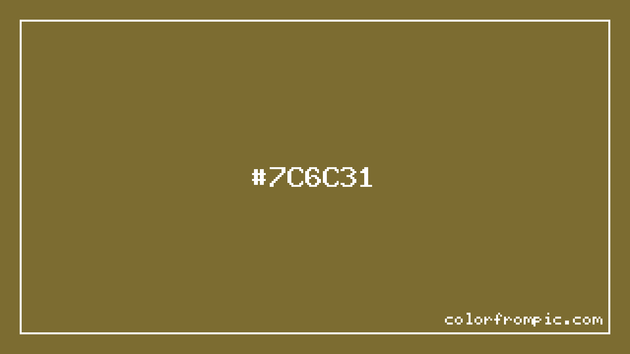For print applications using the CMYK color model, #7C6C31 would be reproduced using 0% cyan, 13% magenta, 60% yellow, and 51% black. The closest web-safe color is #666633, which may be useful for ensuring compatibility across older displays and systems.