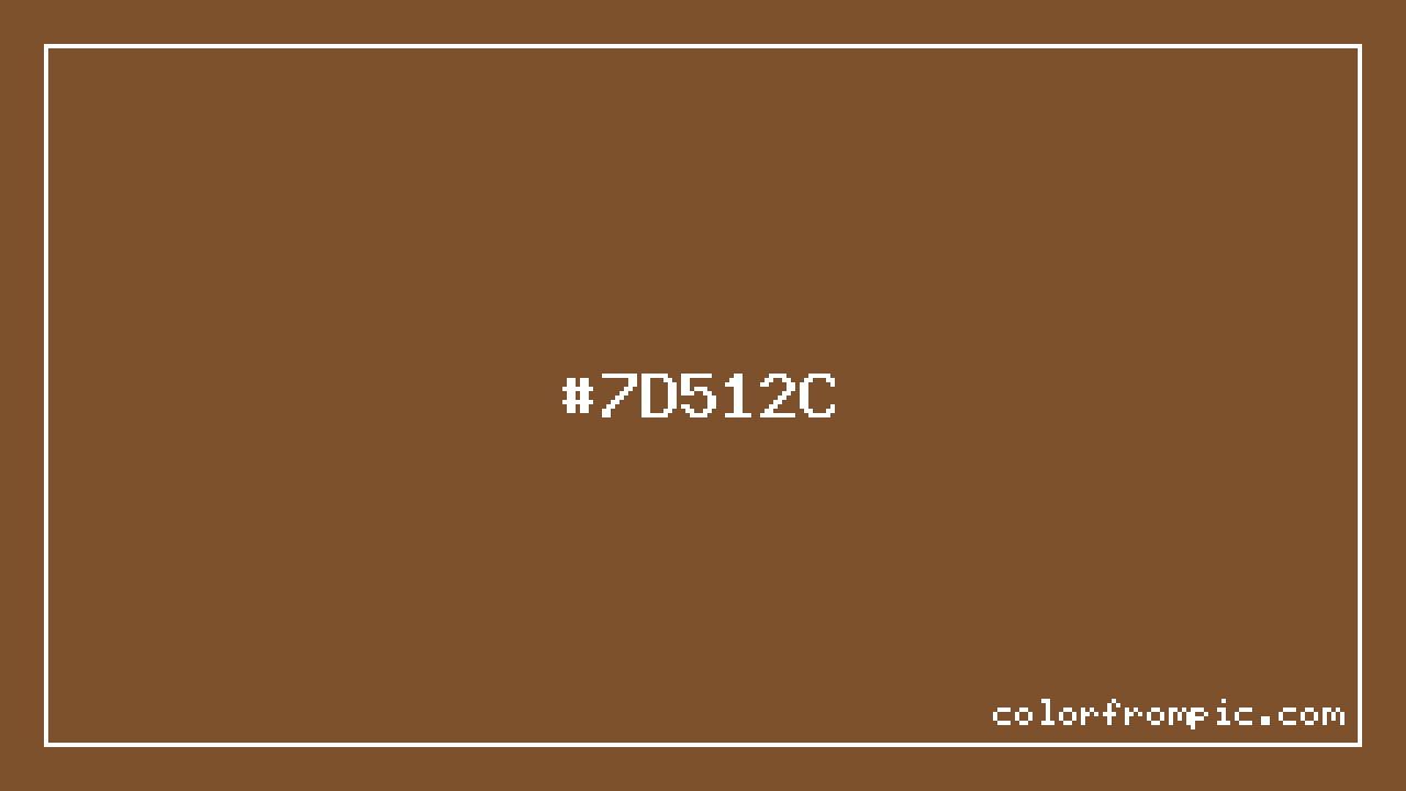 The hexadecimal color code #7D512C represents a dark shade in the red family. In the RGB color model, this color is composed of 125 red, 81 green, and 44 blue, which translates to approximately 49% red, 32% green, and 17% blue. This makes it a slightly desaturated color with warm undertones that can evoke different emotional responses depending on its application.