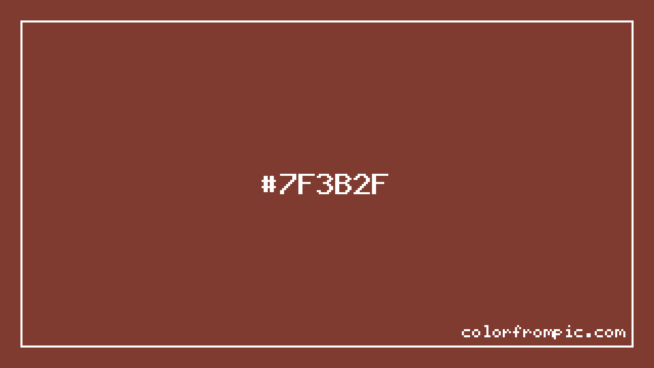 This color works well in various design contexts. With its medium lightness, it's versatile enough for both foreground elements and subtle backgrounds. The moderate to low saturation gives this color a sophisticated, muted quality that works well in professional and minimalist designs. When pairing #7F3B2F with other colors, consider its complementary color at hue 189° for maximum contrast, or use analogous colors within 30° of its hue for harmonious combinations. The decimal representation of this color is 8338223, which can be useful in certain programming contexts.