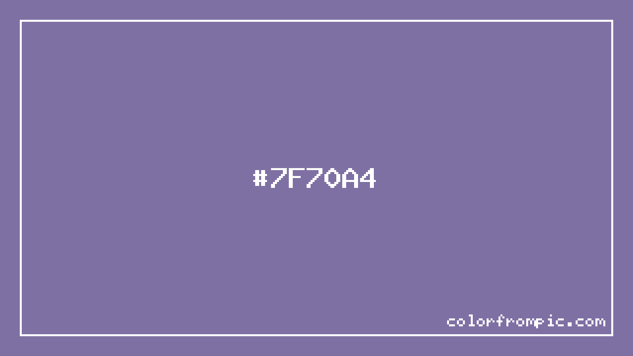 The HEX code for Muted Violet is #7F70A4. In CSS you can use it directly as color: #7F70A4; or as a background: background-color: #7F70A4;. The three-character shorthand is not available for this color since it cannot be reduced without changing the value. Use the full six-character hex for accurate reproduction in any web or design project.