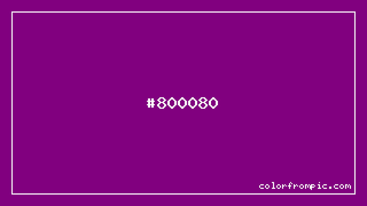 The HEX code for Purple is #800080. In CSS you can use it directly as color: #800080; or as a background: background-color: #800080;. The three-character shorthand is not available for this color since it cannot be reduced without changing the value. Use the full six-character hex for accurate reproduction in any web or design project.