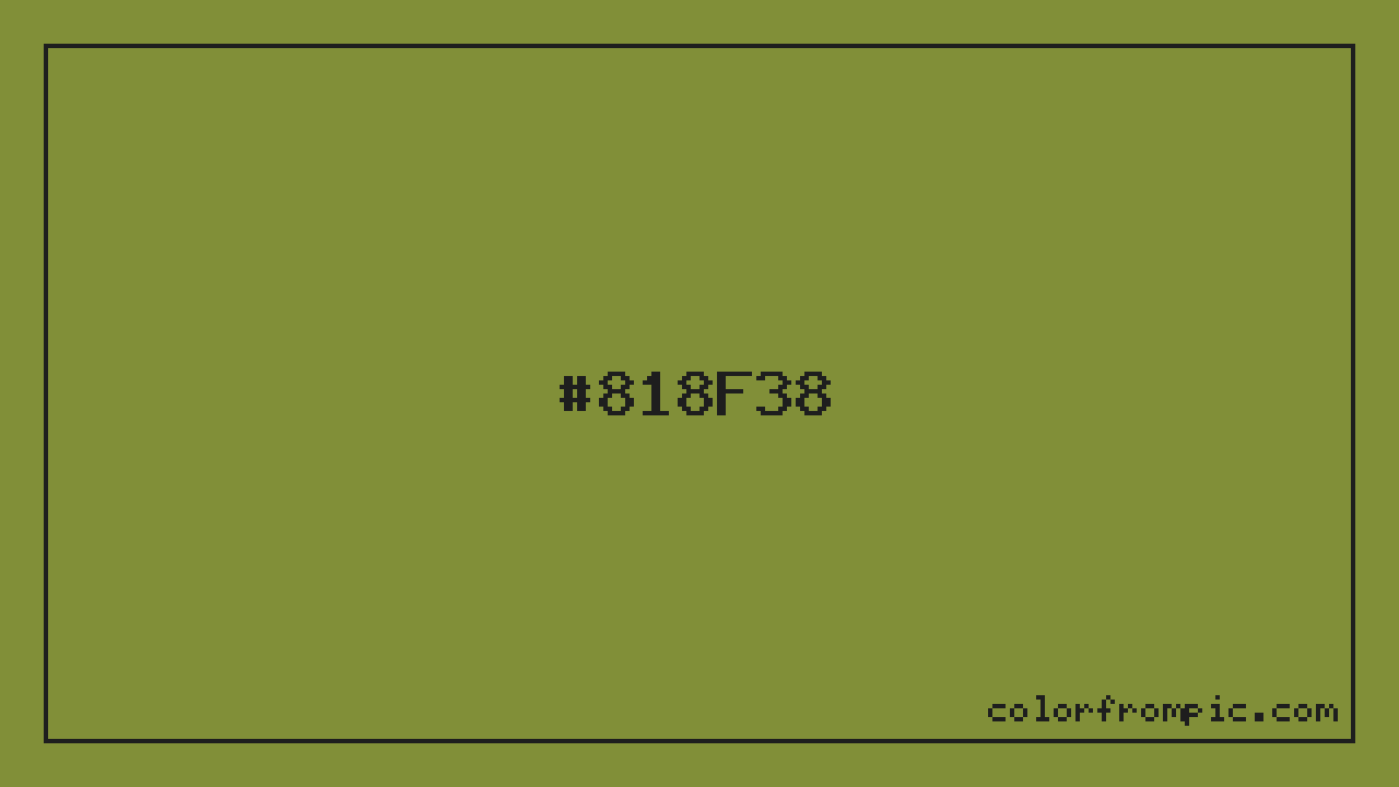 The hexadecimal color code #818F38 represents a dark shade in the yellow family. In the RGB color model, this color is composed of 129 red, 143 green, and 56 blue, which translates to approximately 51% red, 56% green, and 22% blue. This makes it a slightly desaturated color with cool undertones that can evoke different emotional responses depending on its application.