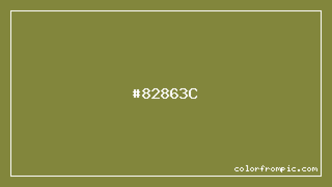 This color works well in various design contexts. With its medium lightness, it's versatile enough for both foreground elements and subtle backgrounds. The moderate to low saturation gives this color a sophisticated, muted quality that works well in professional and minimalist designs. When pairing #82863C with other colors, consider its complementary color at hue 243° for maximum contrast, or use analogous colors within 30° of its hue for harmonious combinations. The decimal representation of this color is 8554044, which can be useful in certain programming contexts.