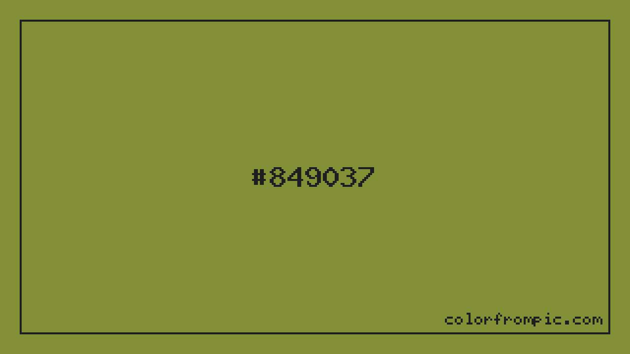 For print applications using the CMYK color model, #849037 would be reproduced using 8% cyan, 0% magenta, 62% yellow, and 44% black. The closest web-safe color is #999933, which may be useful for ensuring compatibility across older displays and systems.