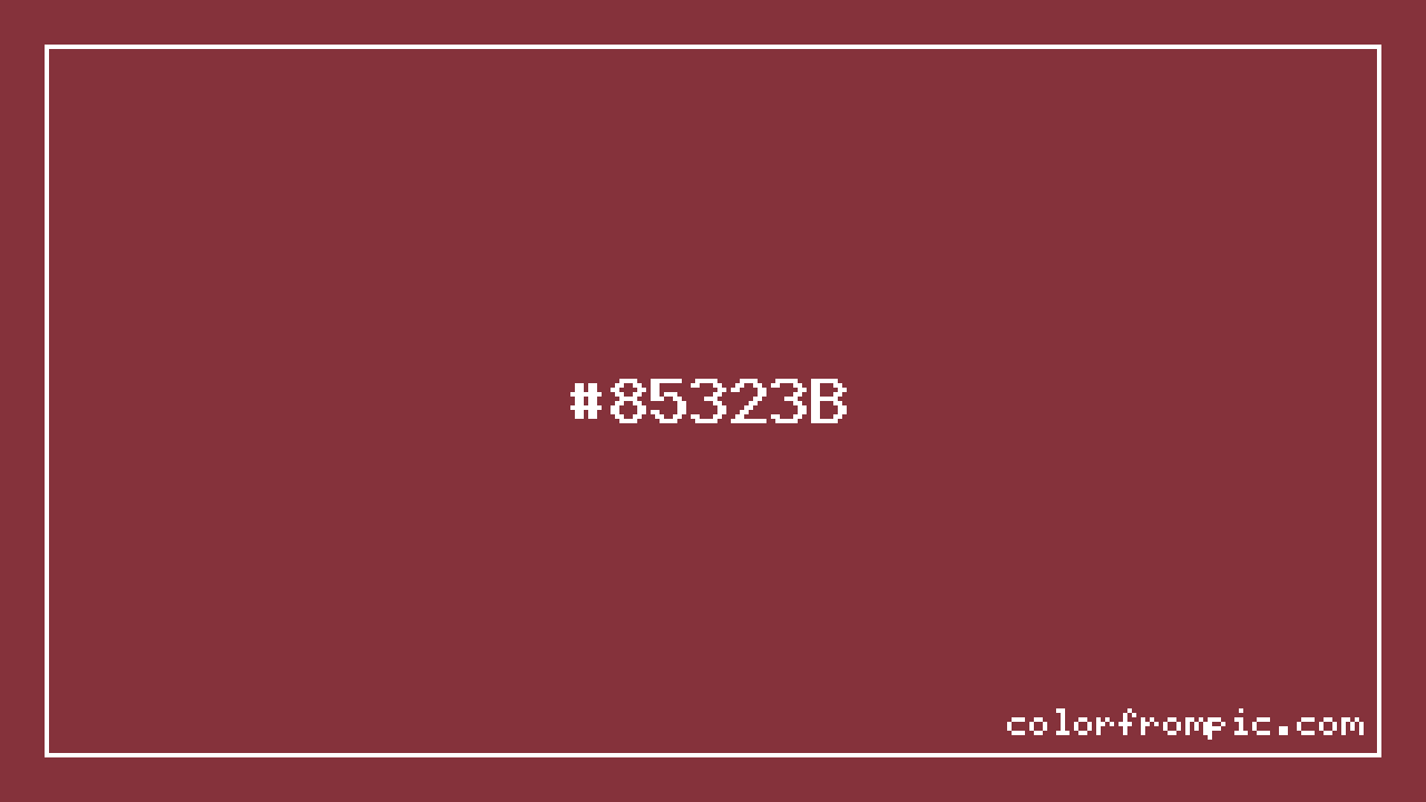 This color works well in various design contexts. With its medium lightness, it's versatile enough for both foreground elements and subtle backgrounds. The moderate to low saturation gives this color a sophisticated, muted quality that works well in professional and minimalist designs. When pairing #85323B with other colors, consider its complementary color at hue 173° for maximum contrast, or use analogous colors within 30° of its hue for harmonious combinations. The decimal representation of this color is 8729147, which can be useful in certain programming contexts.