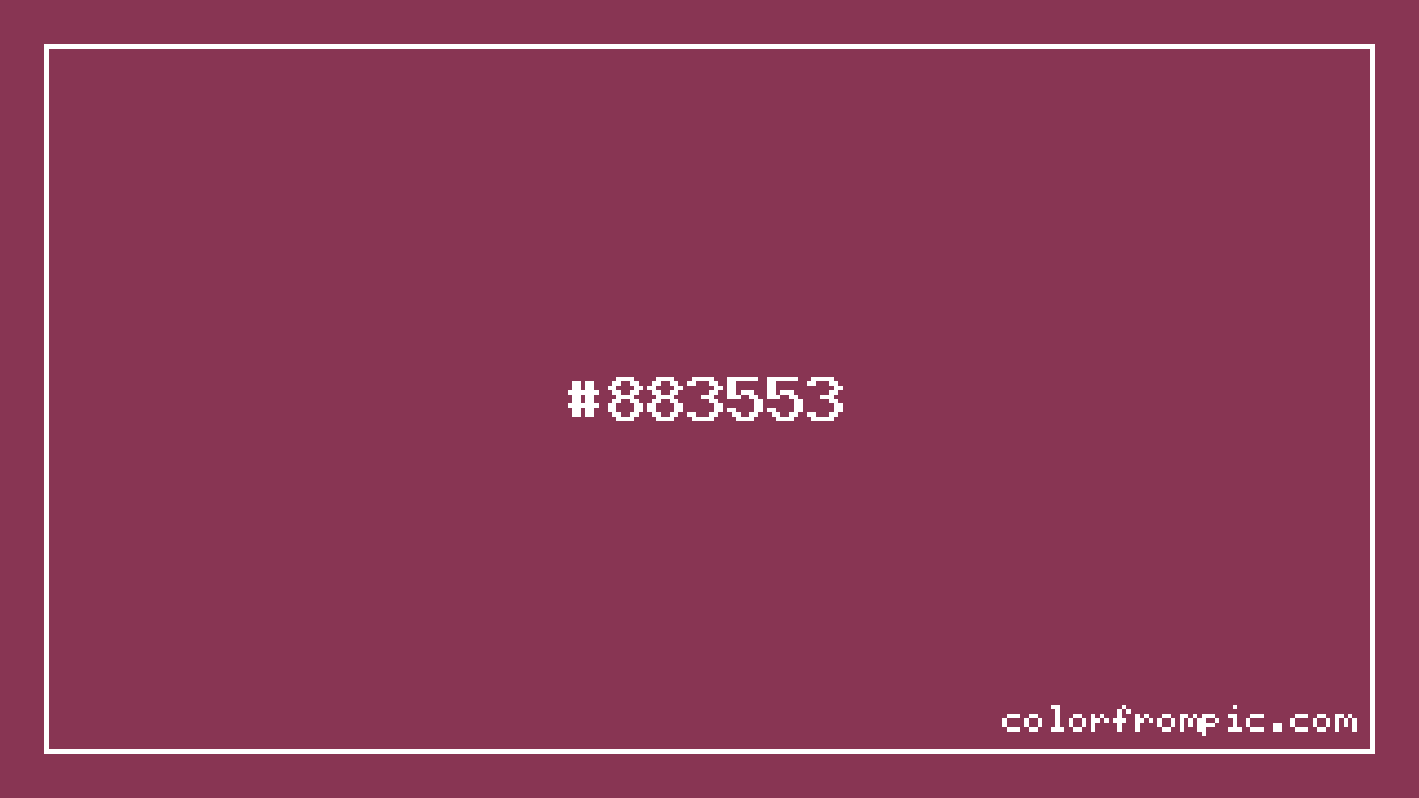 The approximate CMYK value of #883553 is C:0% M:61% Y:39% K:47%. CMYK (Cyan, Magenta, Yellow, Key/Black) is the color model used in physical printing. Unlike RGB which mixes light additively on screens, CMYK mixes inks subtractively on paper. Note that the RGB-to-CMYK conversion is an approximation — screen colors and print colors exist in different color gamuts, and some screen colors cannot be exactly reproduced in print. For precise print work, consult a professional print color profile or Pantone matching system.