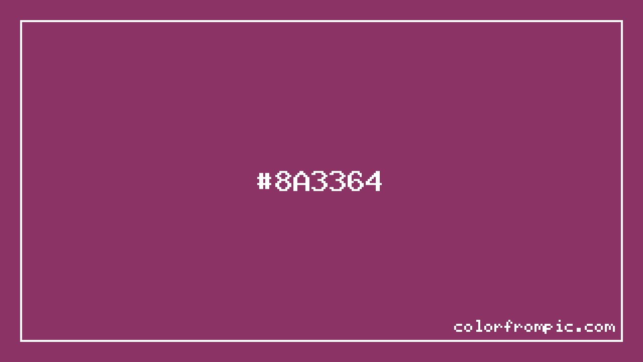 The hexadecimal color code #8A3364 represents a dark shade in the purple family. In the RGB color model, this color is composed of 138 red, 51 green, and 100 blue, which translates to approximately 54% red, 20% green, and 39% blue. This makes it a slightly desaturated color with warm undertones that can evoke different emotional responses depending on its application.