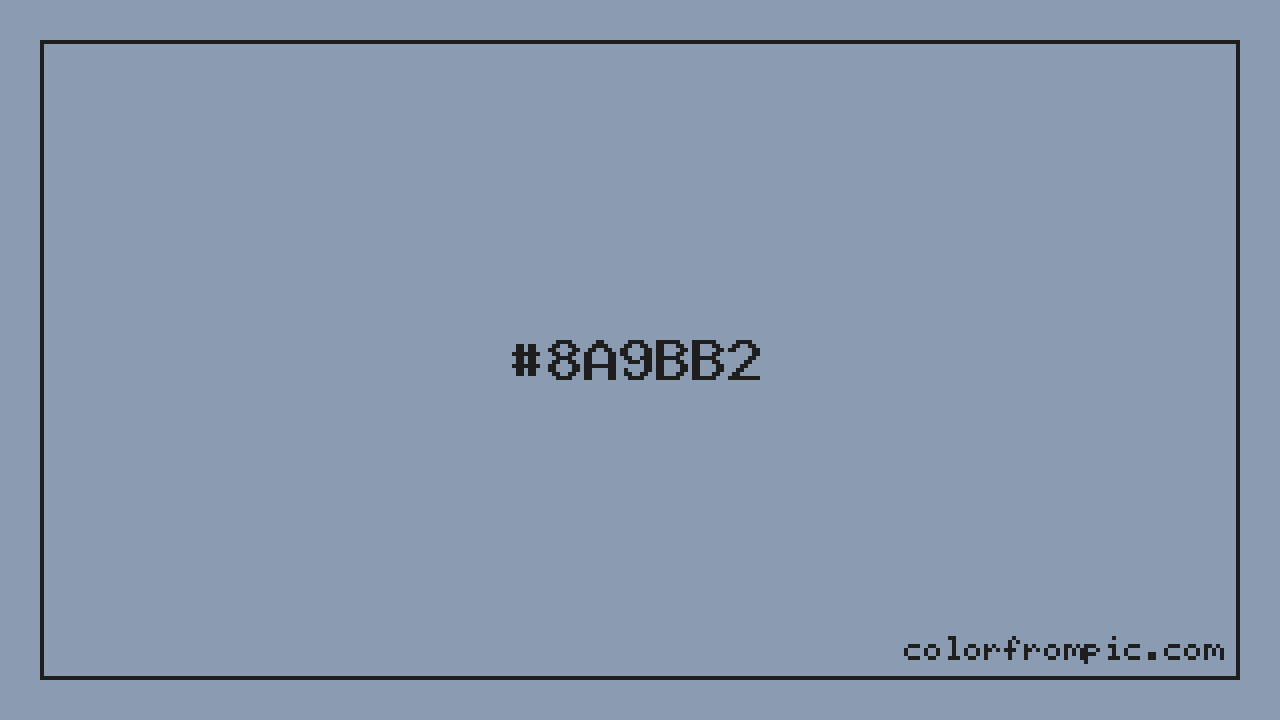 #8A9BB2 is classified as a cool color based on its hue angle of 215°. Cool colors — blues, greens, and purples — evoke calm, trust, and professionalism. They tend to recede visually and create a feeling of space. In design, cool colors are often used for technology, healthcare, and finance brands, as well as anywhere a sense of calm or reliability is needed.