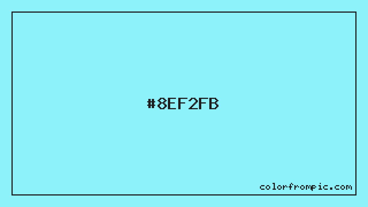 The HEX code for Light Vivid Cyan is #8EF2FB. In CSS you can use it directly as color: #8EF2FB; or as a background: background-color: #8EF2FB;. The three-character shorthand is not available for this color since it cannot be reduced without changing the value. Use the full six-character hex for accurate reproduction in any web or design project.
