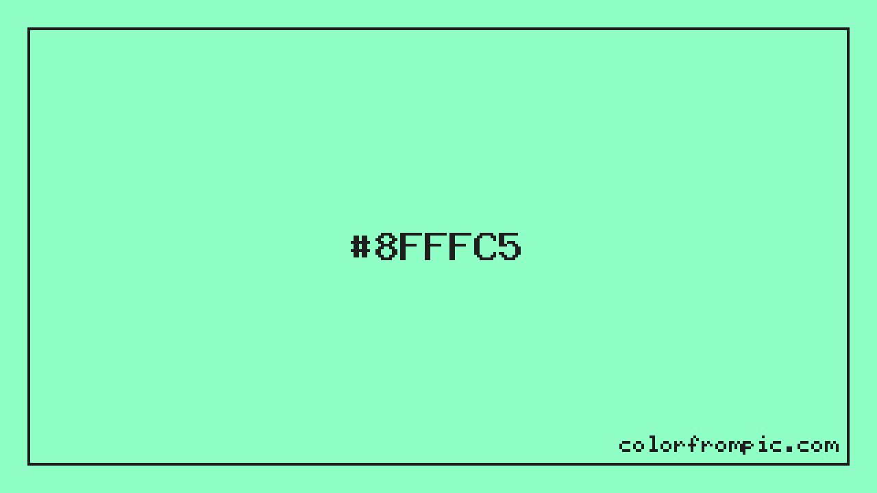 The HEX code for Light Vivid Emerald is #8FFFC5. In CSS you can use it directly as color: #8FFFC5; or as a background: background-color: #8FFFC5;. The three-character shorthand is not available for this color since it cannot be reduced without changing the value. Use the full six-character hex for accurate reproduction in any web or design project.