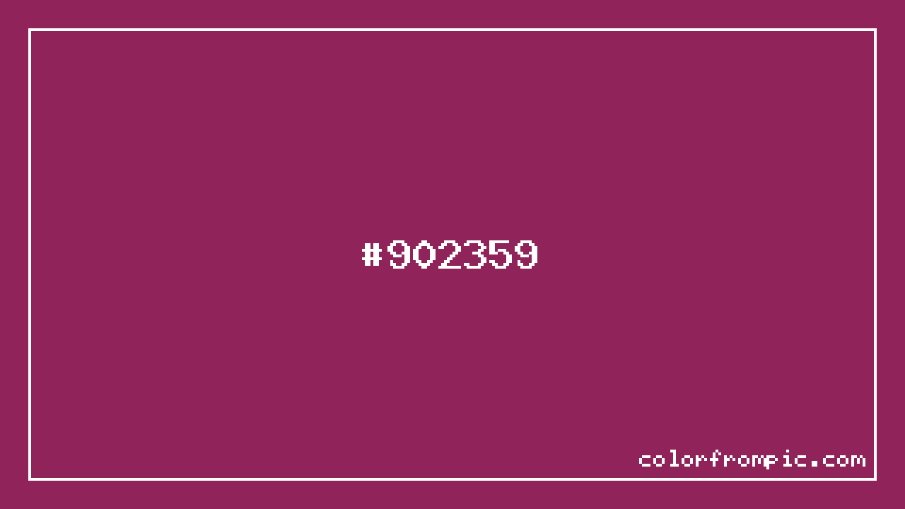 The hexadecimal color code #902359 represents a dark shade in the red family. In the RGB color model, this color is composed of 144 red, 35 green, and 89 blue, which translates to approximately 56% red, 14% green, and 35% blue. This makes it a moderately saturated color with warm undertones that can evoke different emotional responses depending on its application.
