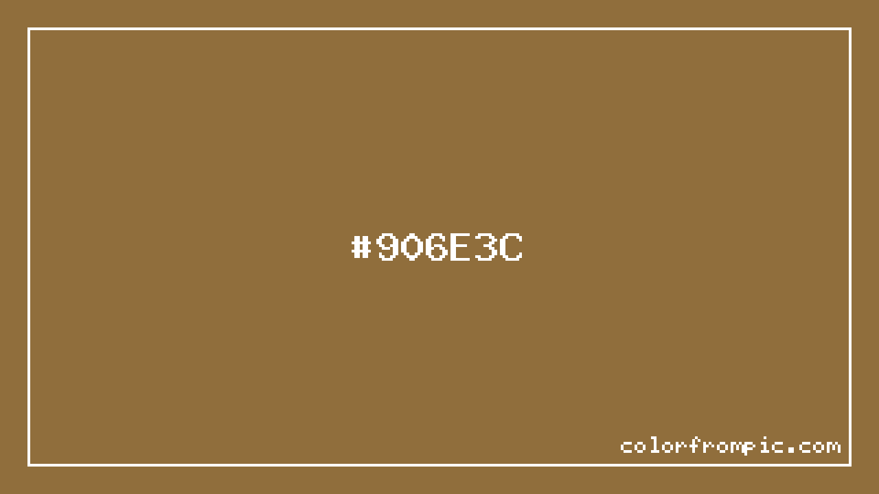 This color works well in various design contexts. With its medium lightness, it's versatile enough for both foreground elements and subtle backgrounds. The moderate to low saturation gives this color a sophisticated, muted quality that works well in professional and minimalist designs. When pairing #906E3C with other colors, consider its complementary color at hue 216° for maximum contrast, or use analogous colors within 30° of its hue for harmonious combinations. The decimal representation of this color is 9465404, which can be useful in certain programming contexts.