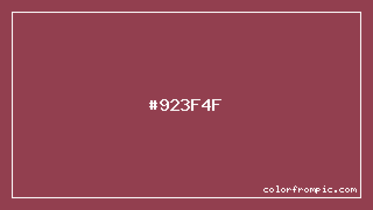This color works well in various design contexts. With its medium lightness, it's versatile enough for both foreground elements and subtle backgrounds. The moderate to low saturation gives this color a sophisticated, muted quality that works well in professional and minimalist designs. When pairing #923F4F with other colors, consider its complementary color at hue 168° for maximum contrast, or use analogous colors within 30° of its hue for harmonious combinations. The decimal representation of this color is 9584463, which can be useful in certain programming contexts.