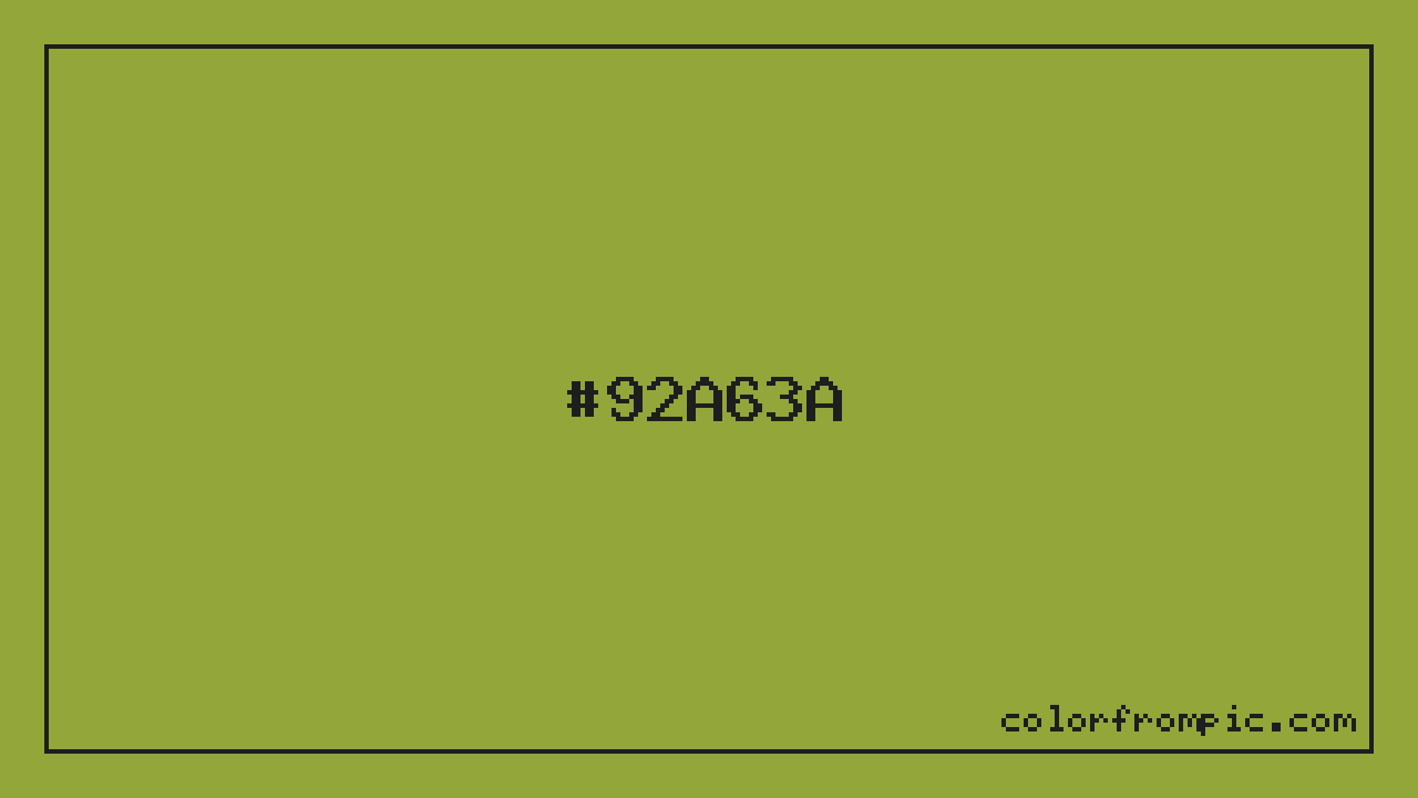 The RGB value of #92A63A is rgb(146, 166, 58). This means the color contains 146 out of 255 parts red, 166 out of 255 parts green, and 58 out of 255 parts blue. Red is the weakest (with blue dominant) channel in this color mix. You can use the full RGB function in any CSS property: color: rgb(146, 166, 58);