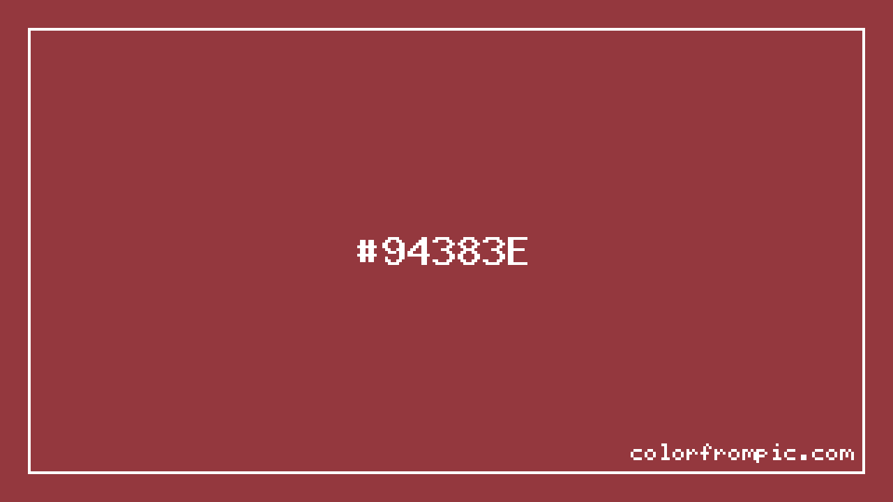 This color works well in various design contexts. With its medium lightness, it's versatile enough for both foreground elements and subtle backgrounds. The moderate to low saturation gives this color a sophisticated, muted quality that works well in professional and minimalist designs. When pairing #94383E with other colors, consider its complementary color at hue 176° for maximum contrast, or use analogous colors within 30° of its hue for harmonious combinations. The decimal representation of this color is 9713726, which can be useful in certain programming contexts.
