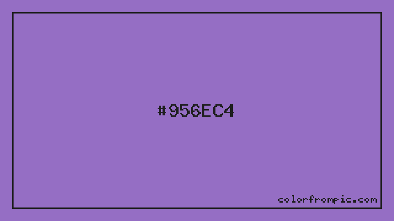 For print applications using the CMYK color model, #956EC4 would be reproduced using 24% cyan, 44% magenta, 0% yellow, and 23% black. The closest web-safe color is #9966CC, which may be useful for ensuring compatibility across older displays and systems.