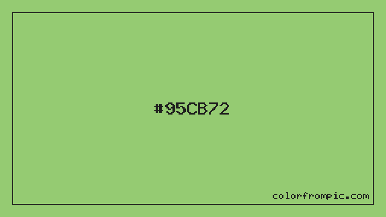 The hexadecimal color code #95CB72 represents a light shade in the green family. In the RGB color model, this color is composed of 149 red, 203 green, and 114 blue, which translates to approximately 58% red, 80% green, and 45% blue. This makes it a slightly desaturated color with cool undertones that can evoke different emotional responses depending on its application.