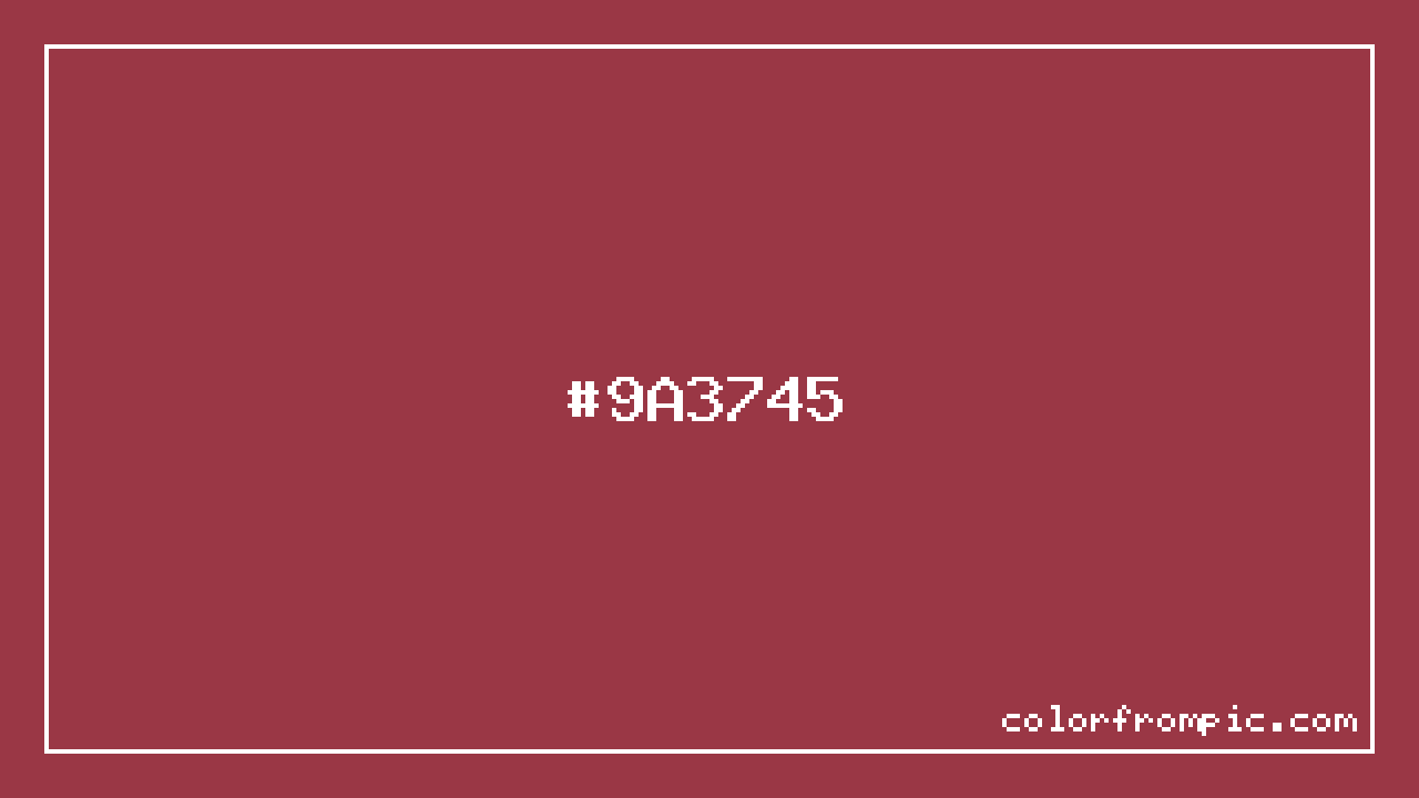 This color works well in various design contexts. With its medium lightness, it's versatile enough for both foreground elements and subtle backgrounds. The moderate to low saturation gives this color a sophisticated, muted quality that works well in professional and minimalist designs. When pairing #9A3745 with other colors, consider its complementary color at hue 172° for maximum contrast, or use analogous colors within 30° of its hue for harmonious combinations. The decimal representation of this color is 10106693, which can be useful in certain programming contexts.