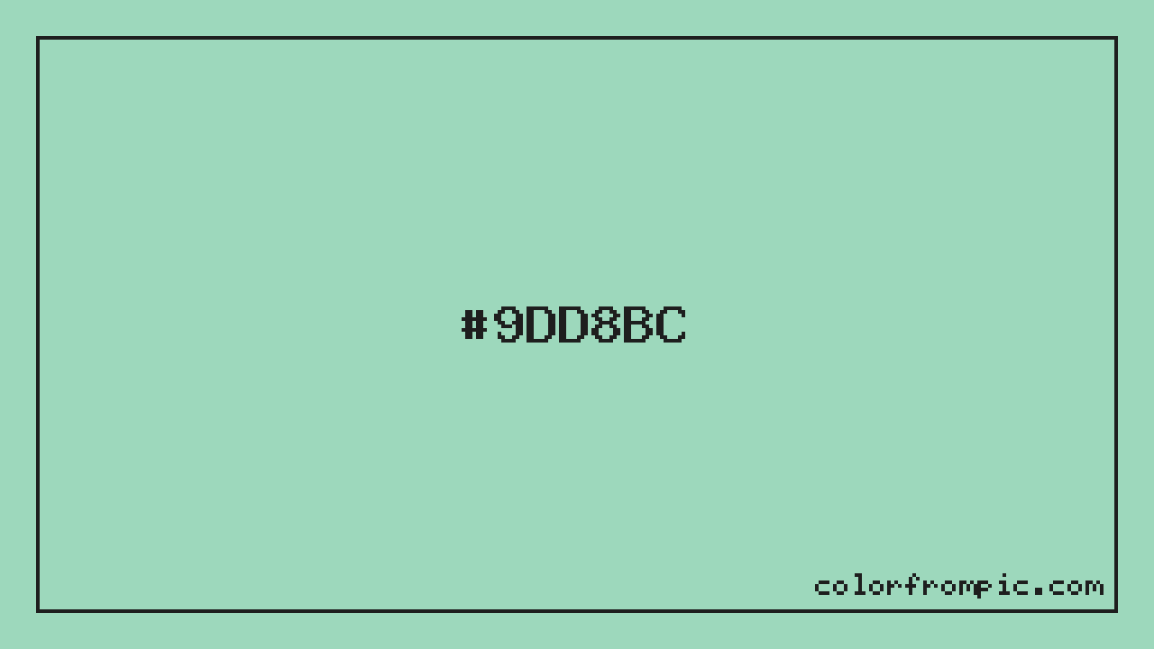 The RGB value of #9DD8BC is rgb(157, 216, 188). This means the color contains 157 out of 255 parts red, 216 out of 255 parts green, and 188 out of 255 parts blue. Red is the weakest (with blue dominant) channel in this color mix. You can use the full RGB function in any CSS property: color: rgb(157, 216, 188);