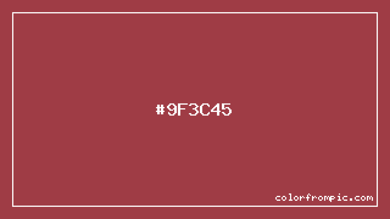 This color works well in various design contexts. With its medium lightness, it's versatile enough for both foreground elements and subtle backgrounds. The moderate to low saturation gives this color a sophisticated, muted quality that works well in professional and minimalist designs. When pairing #9F3C45 with other colors, consider its complementary color at hue 175° for maximum contrast, or use analogous colors within 30° of its hue for harmonious combinations. The decimal representation of this color is 10435653, which can be useful in certain programming contexts.