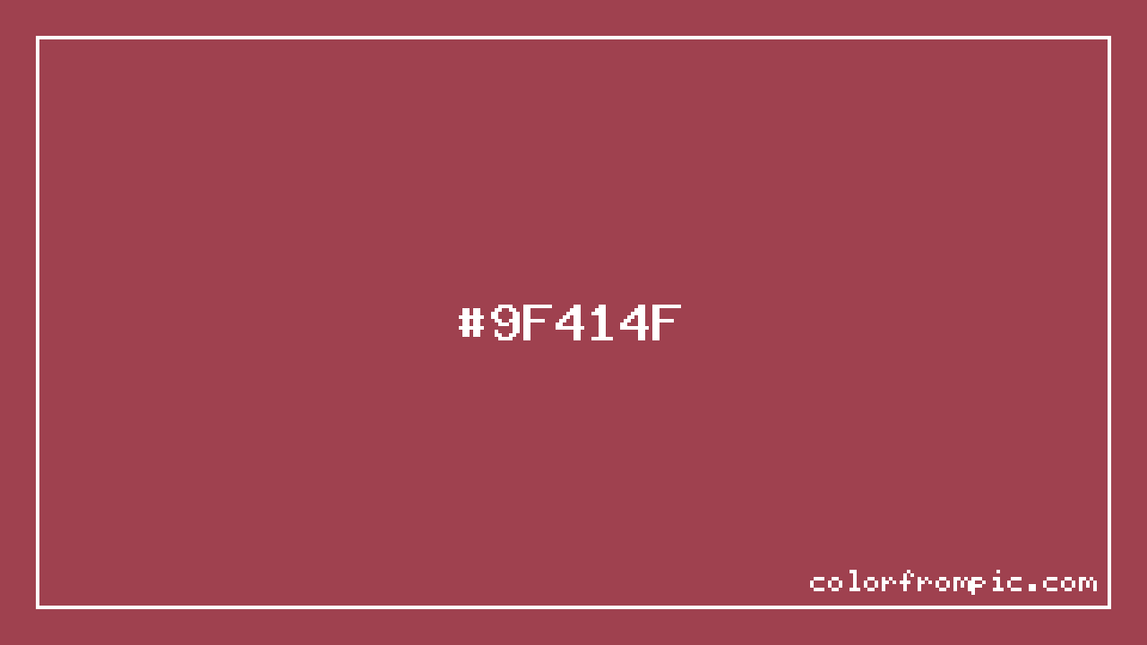 This color works well in various design contexts. With its medium lightness, it's versatile enough for both foreground elements and subtle backgrounds. The moderate to low saturation gives this color a sophisticated, muted quality that works well in professional and minimalist designs. When pairing #9F414F with other colors, consider its complementary color at hue 171° for maximum contrast, or use analogous colors within 30° of its hue for harmonious combinations. The decimal representation of this color is 10436943, which can be useful in certain programming contexts.