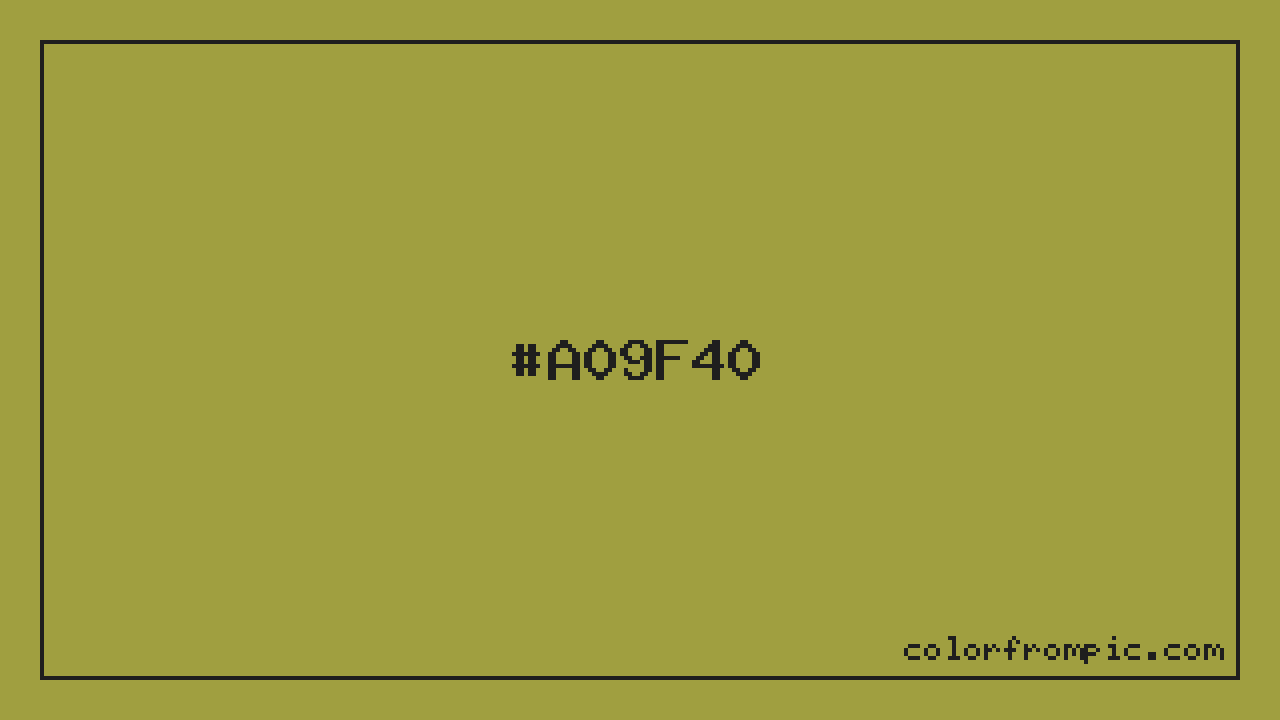 The hexadecimal color code #A09F40 represents a medium shade in the orange family. In the RGB color model, this color is composed of 160 red, 159 green, and 64 blue, which translates to approximately 63% red, 62% green, and 25% blue. This makes it a slightly desaturated color with warm undertones that can evoke different emotional responses depending on its application.