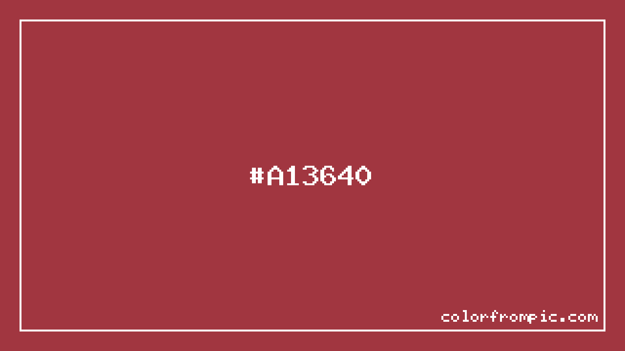 This color works well in various design contexts. With its medium lightness, it's versatile enough for both foreground elements and subtle backgrounds. The moderate to low saturation gives this color a sophisticated, muted quality that works well in professional and minimalist designs. When pairing #A13640 with other colors, consider its complementary color at hue 174° for maximum contrast, or use analogous colors within 30° of its hue for harmonious combinations. The decimal representation of this color is 10565184, which can be useful in certain programming contexts.