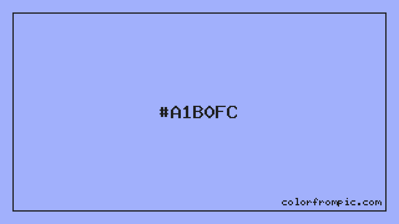 The HEX code for Light Vivid Blue is #A1B0FC. In CSS you can use it directly as color: #A1B0FC; or as a background: background-color: #A1B0FC;. The three-character shorthand is not available for this color since it cannot be reduced without changing the value. Use the full six-character hex for accurate reproduction in any web or design project.