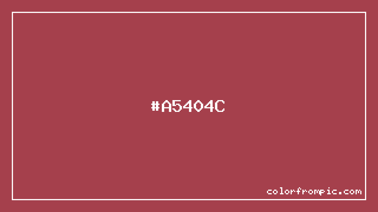 The approximate CMYK value of #A5404C is C:0% M:61% Y:54% K:35%. CMYK (Cyan, Magenta, Yellow, Key/Black) is the color model used in physical printing. Unlike RGB which mixes light additively on screens, CMYK mixes inks subtractively on paper. Note that the RGB-to-CMYK conversion is an approximation — screen colors and print colors exist in different color gamuts, and some screen colors cannot be exactly reproduced in print. For precise print work, consult a professional print color profile or Pantone matching system.