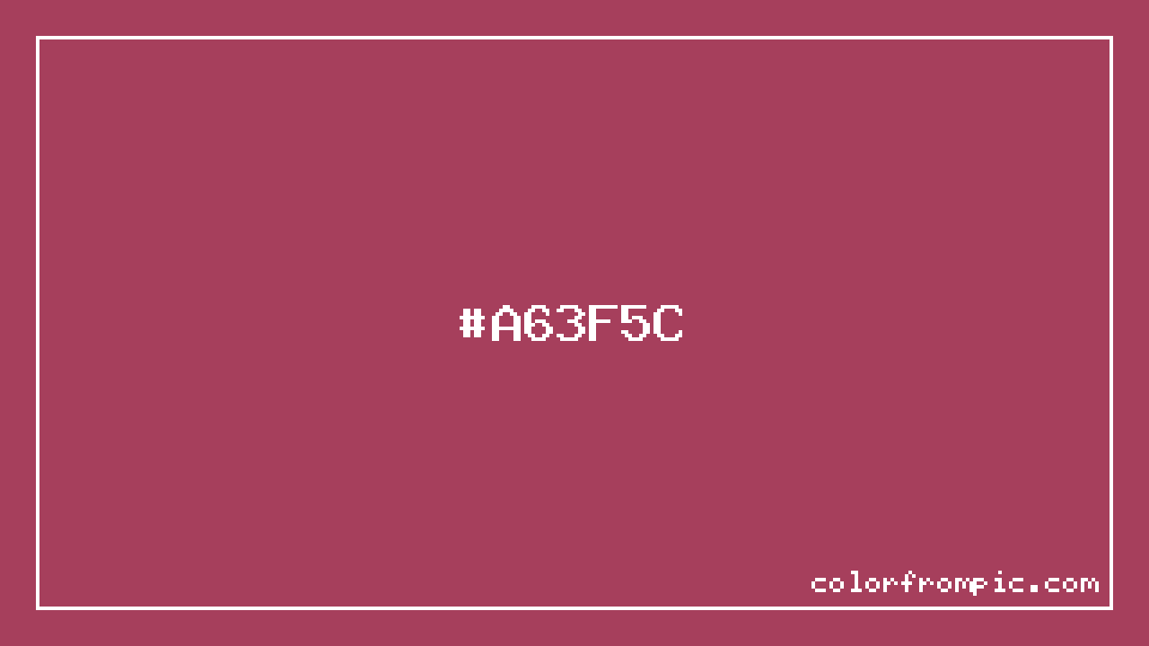 This color works well in various design contexts. With its medium lightness, it's versatile enough for both foreground elements and subtle backgrounds. The moderate to low saturation gives this color a sophisticated, muted quality that works well in professional and minimalist designs. When pairing #A63F5C with other colors, consider its complementary color at hue 163° for maximum contrast, or use analogous colors within 30° of its hue for harmonious combinations. The decimal representation of this color is 10895196, which can be useful in certain programming contexts.
