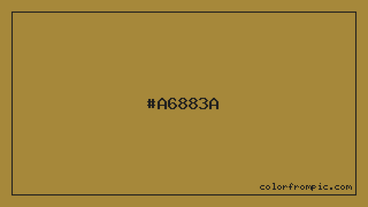 This color works well in various design contexts. With its medium lightness, it's versatile enough for both foreground elements and subtle backgrounds. The moderate to low saturation gives this color a sophisticated, muted quality that works well in professional and minimalist designs. When pairing #A6883A with other colors, consider its complementary color at hue 223° for maximum contrast, or use analogous colors within 30° of its hue for harmonious combinations. The decimal representation of this color is 10913850, which can be useful in certain programming contexts.