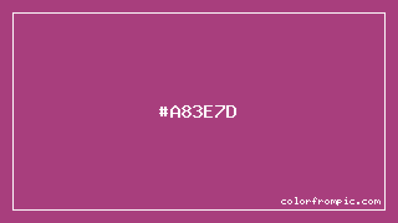 The HEX code for Magenta is #A83E7D. In CSS you can use it directly as color: #A83E7D; or as a background: background-color: #A83E7D;. The three-character shorthand is not available for this color since it cannot be reduced without changing the value. Use the full six-character hex for accurate reproduction in any web or design project.