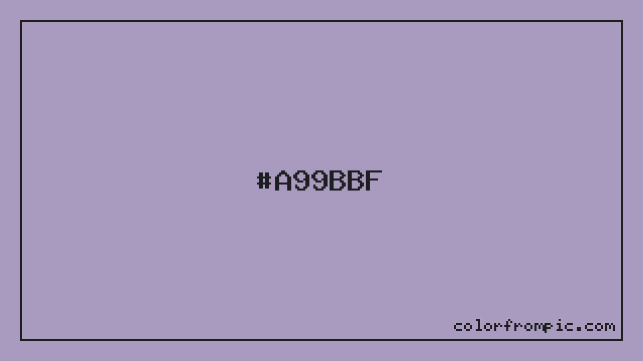 This color works well in various design contexts. With its medium lightness, it's versatile enough for both foreground elements and subtle backgrounds. The moderate to low saturation gives this color a sophisticated, muted quality that works well in professional and minimalist designs. When pairing #A99BBF with other colors, consider its complementary color at hue 83° for maximum contrast, or use analogous colors within 30° of its hue for harmonious combinations. The decimal representation of this color is 11115455, which can be useful in certain programming contexts.