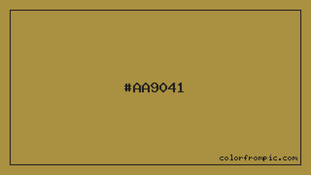 This color works well in various design contexts. With its medium lightness, it's versatile enough for both foreground elements and subtle backgrounds. The moderate to low saturation gives this color a sophisticated, muted quality that works well in professional and minimalist designs. When pairing #AA9041 with other colors, consider its complementary color at hue 225° for maximum contrast, or use analogous colors within 30° of its hue for harmonious combinations. The decimal representation of this color is 11178049, which can be useful in certain programming contexts.