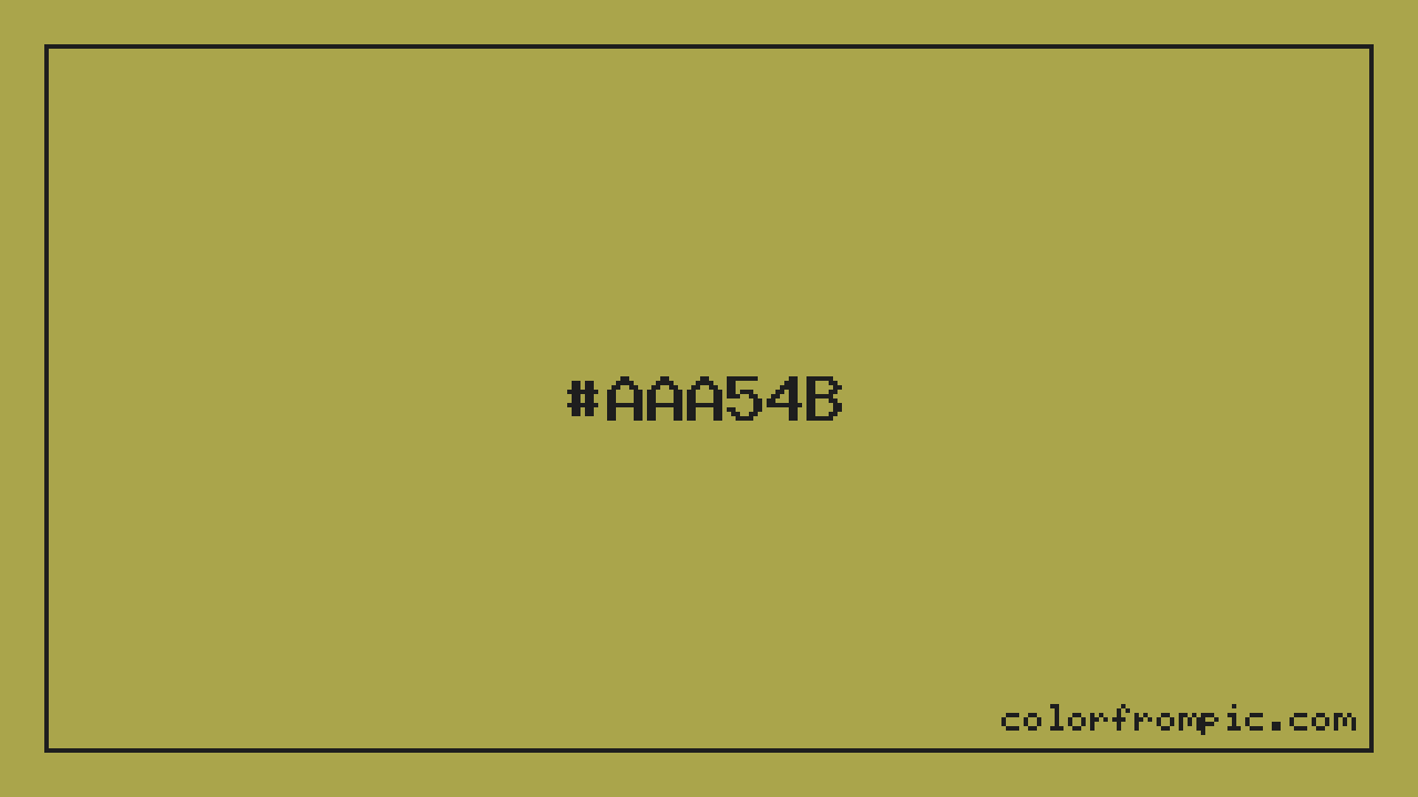 This color works well in various design contexts. With its medium lightness, it's versatile enough for both foreground elements and subtle backgrounds. The moderate to low saturation gives this color a sophisticated, muted quality that works well in professional and minimalist designs. When pairing #AAA54B with other colors, consider its complementary color at hue 237° for maximum contrast, or use analogous colors within 30° of its hue for harmonious combinations. The decimal representation of this color is 11183435, which can be useful in certain programming contexts.