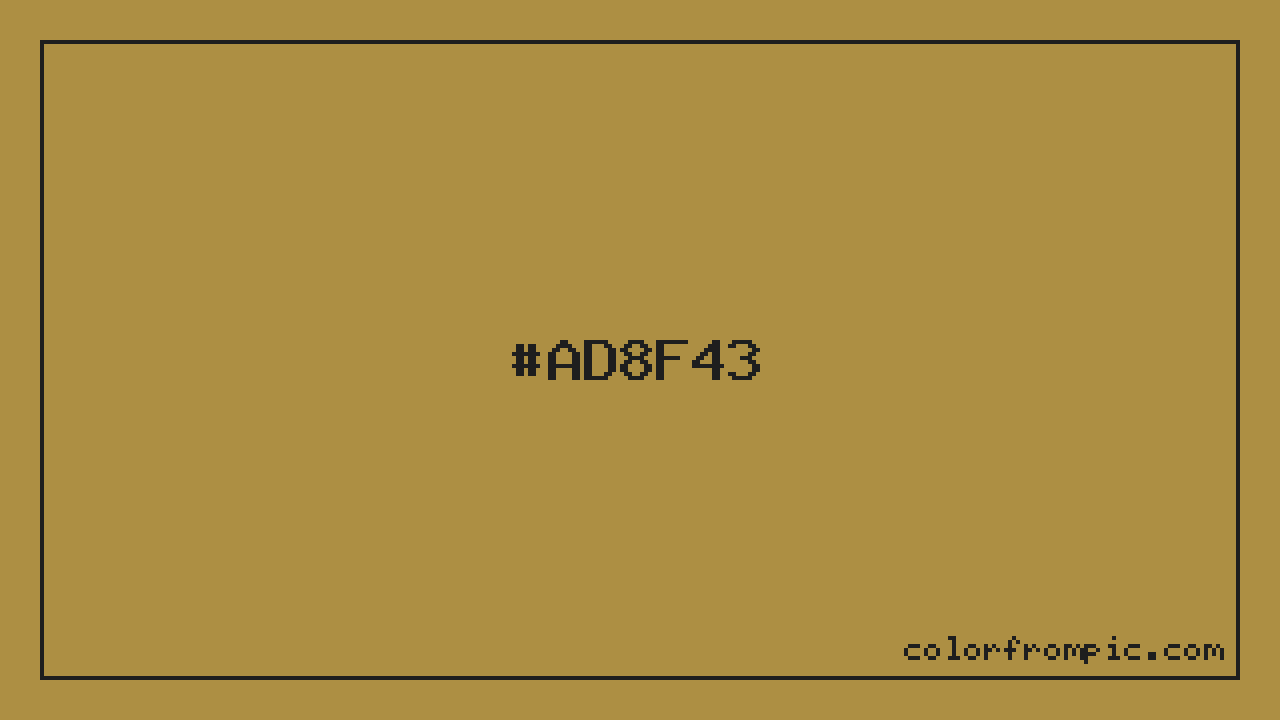 This color works well in various design contexts. With its medium lightness, it's versatile enough for both foreground elements and subtle backgrounds. The moderate to low saturation gives this color a sophisticated, muted quality that works well in professional and minimalist designs. When pairing #AD8F43 with other colors, consider its complementary color at hue 223° for maximum contrast, or use analogous colors within 30° of its hue for harmonious combinations. The decimal representation of this color is 11374403, which can be useful in certain programming contexts.