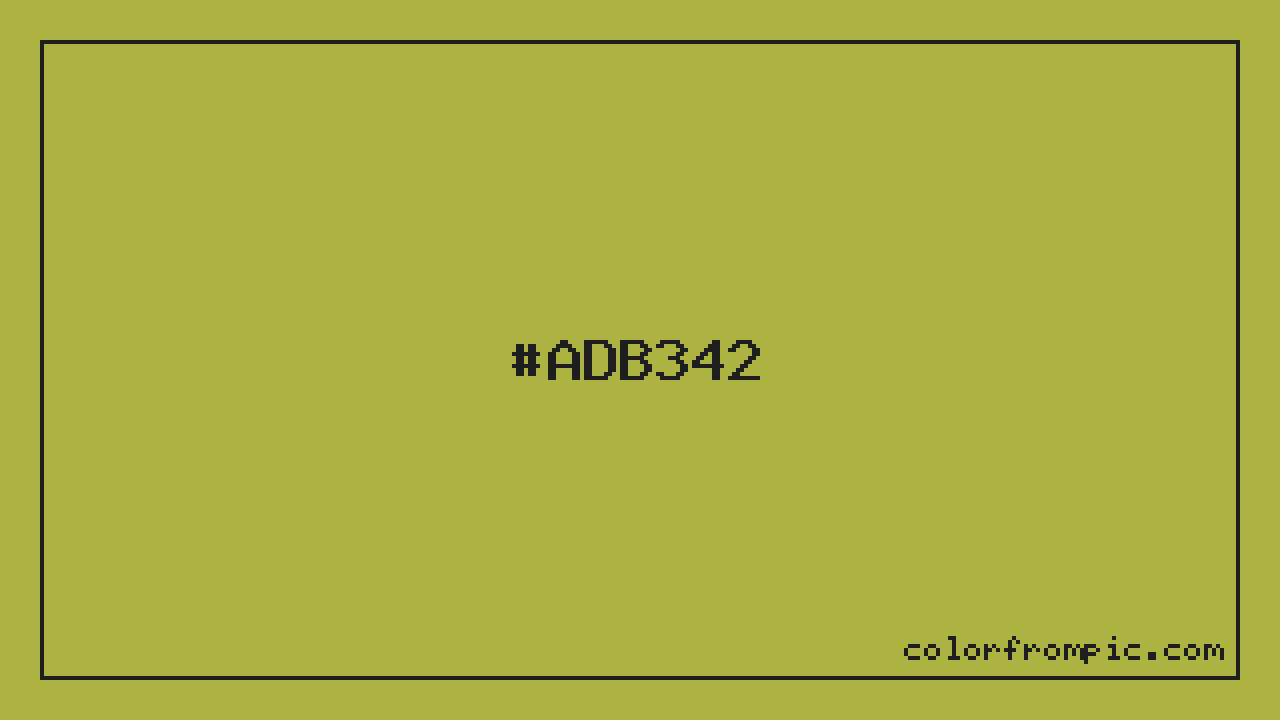 The hexadecimal color code #ADB342 represents a medium shade in the yellow family. In the RGB color model, this color is composed of 173 red, 179 green, and 66 blue, which translates to approximately 68% red, 70% green, and 26% blue. This makes it a slightly desaturated color with cool undertones that can evoke different emotional responses depending on its application.
