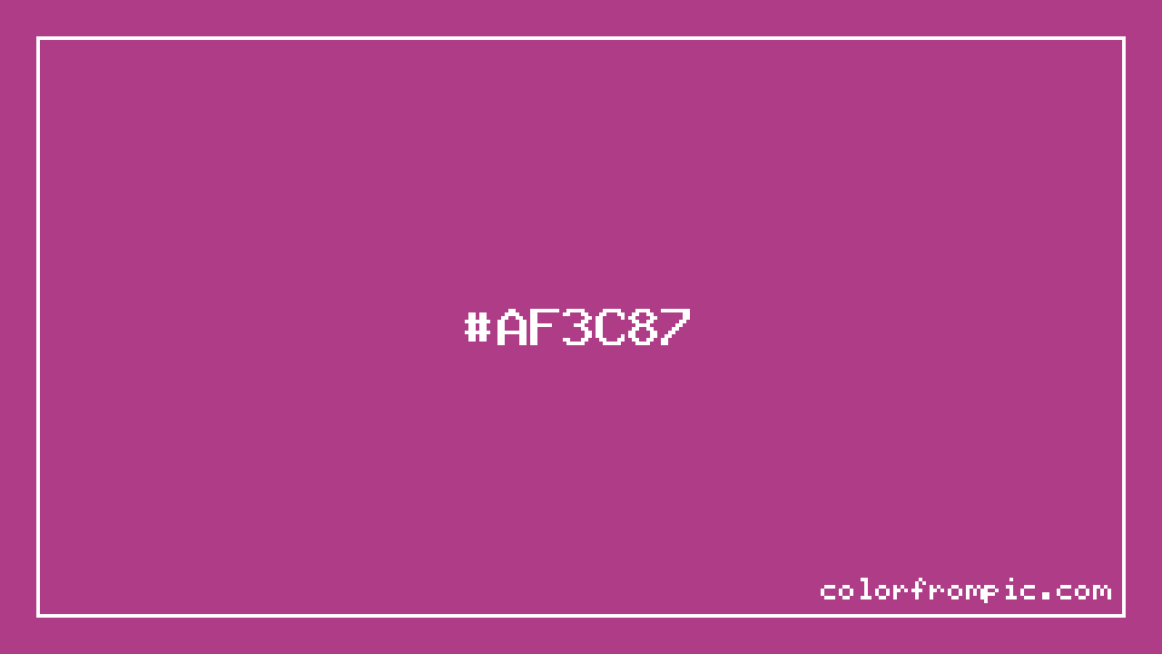 This color works well in various design contexts. With its medium lightness, it's versatile enough for both foreground elements and subtle backgrounds. The moderate to low saturation gives this color a sophisticated, muted quality that works well in professional and minimalist designs. When pairing #AF3C87 with other colors, consider its complementary color at hue 141° for maximum contrast, or use analogous colors within 30° of its hue for harmonious combinations. The decimal representation of this color is 11484295, which can be useful in certain programming contexts.