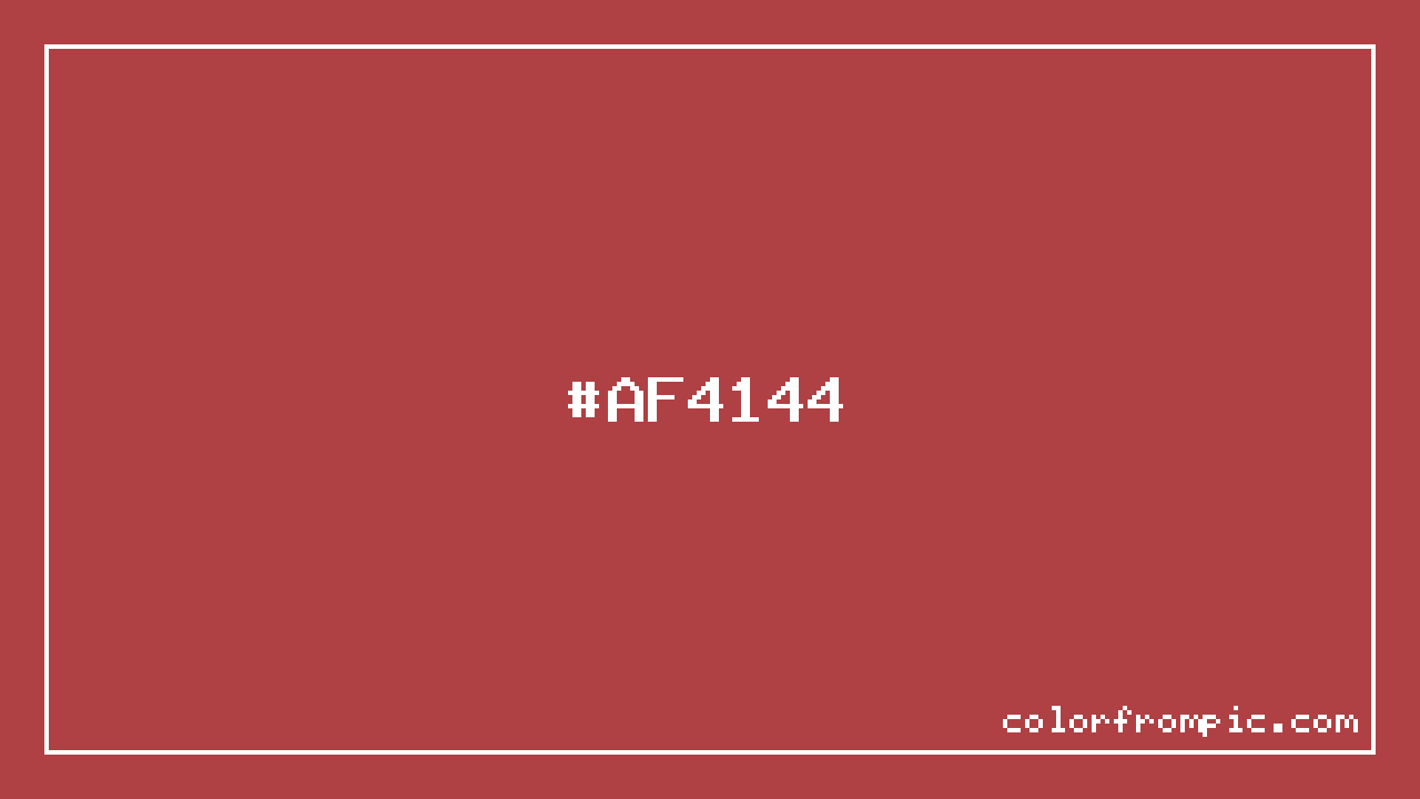 The approximate CMYK value of #AF4144 is C:0% M:63% Y:61% K:31%. CMYK (Cyan, Magenta, Yellow, Key/Black) is the color model used in physical printing. Unlike RGB which mixes light additively on screens, CMYK mixes inks subtractively on paper. Note that the RGB-to-CMYK conversion is an approximation — screen colors and print colors exist in different color gamuts, and some screen colors cannot be exactly reproduced in print. For precise print work, consult a professional print color profile or Pantone matching system.