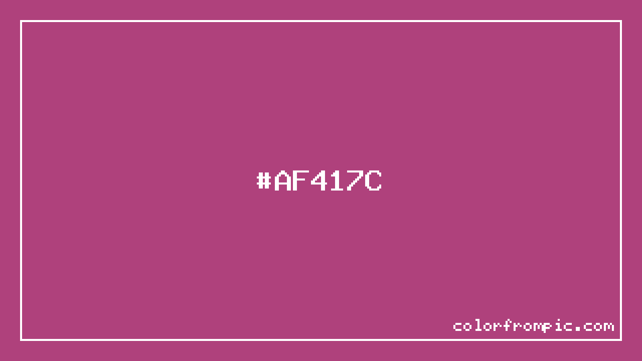The approximate CMYK value of #AF417C is C:0% M:63% Y:29% K:31%. CMYK (Cyan, Magenta, Yellow, Key/Black) is the color model used in physical printing. Unlike RGB which mixes light additively on screens, CMYK mixes inks subtractively on paper. Note that the RGB-to-CMYK conversion is an approximation — screen colors and print colors exist in different color gamuts, and some screen colors cannot be exactly reproduced in print. For precise print work, consult a professional print color profile or Pantone matching system.