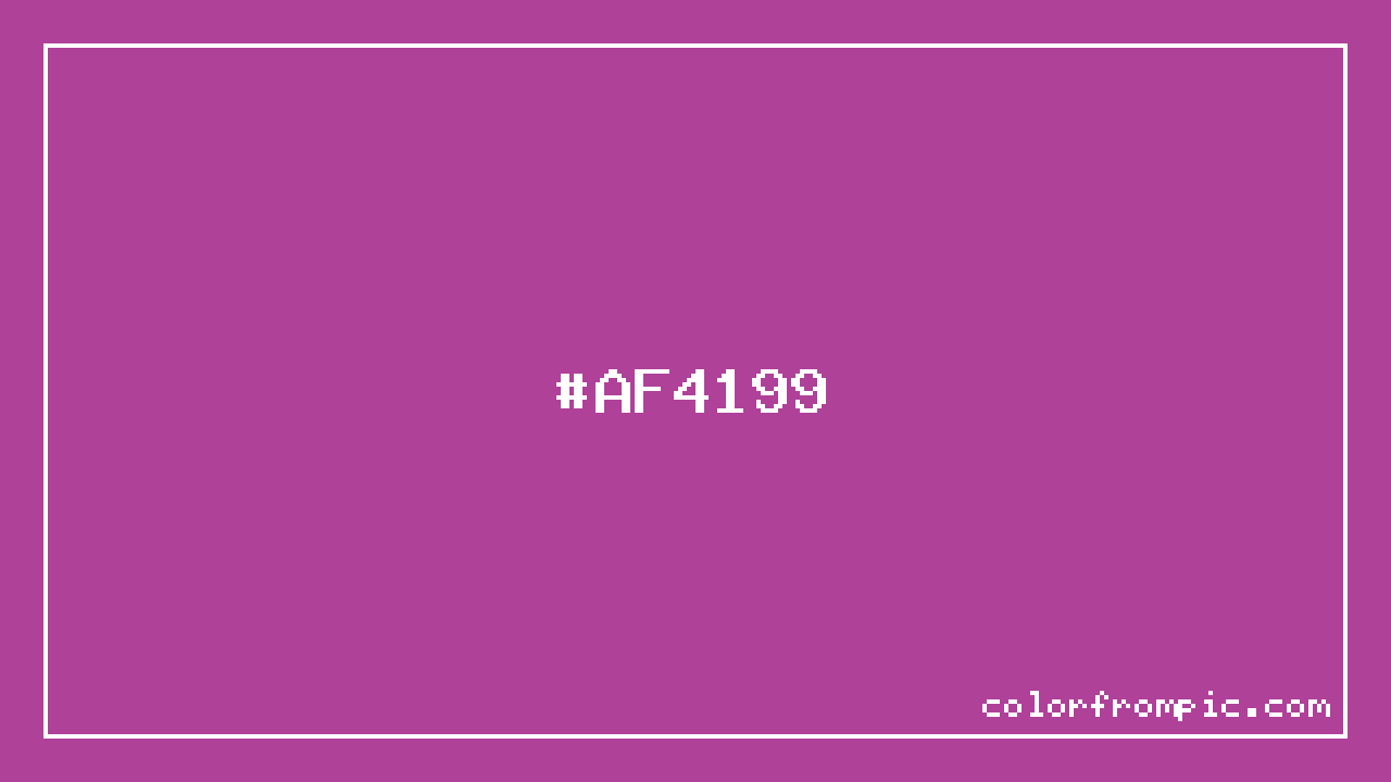 This color works well in various design contexts. With its medium lightness, it's versatile enough for both foreground elements and subtle backgrounds. The moderate to low saturation gives this color a sophisticated, muted quality that works well in professional and minimalist designs. When pairing #AF4199 with other colors, consider its complementary color at hue 132° for maximum contrast, or use analogous colors within 30° of its hue for harmonious combinations. The decimal representation of this color is 11485593, which can be useful in certain programming contexts.