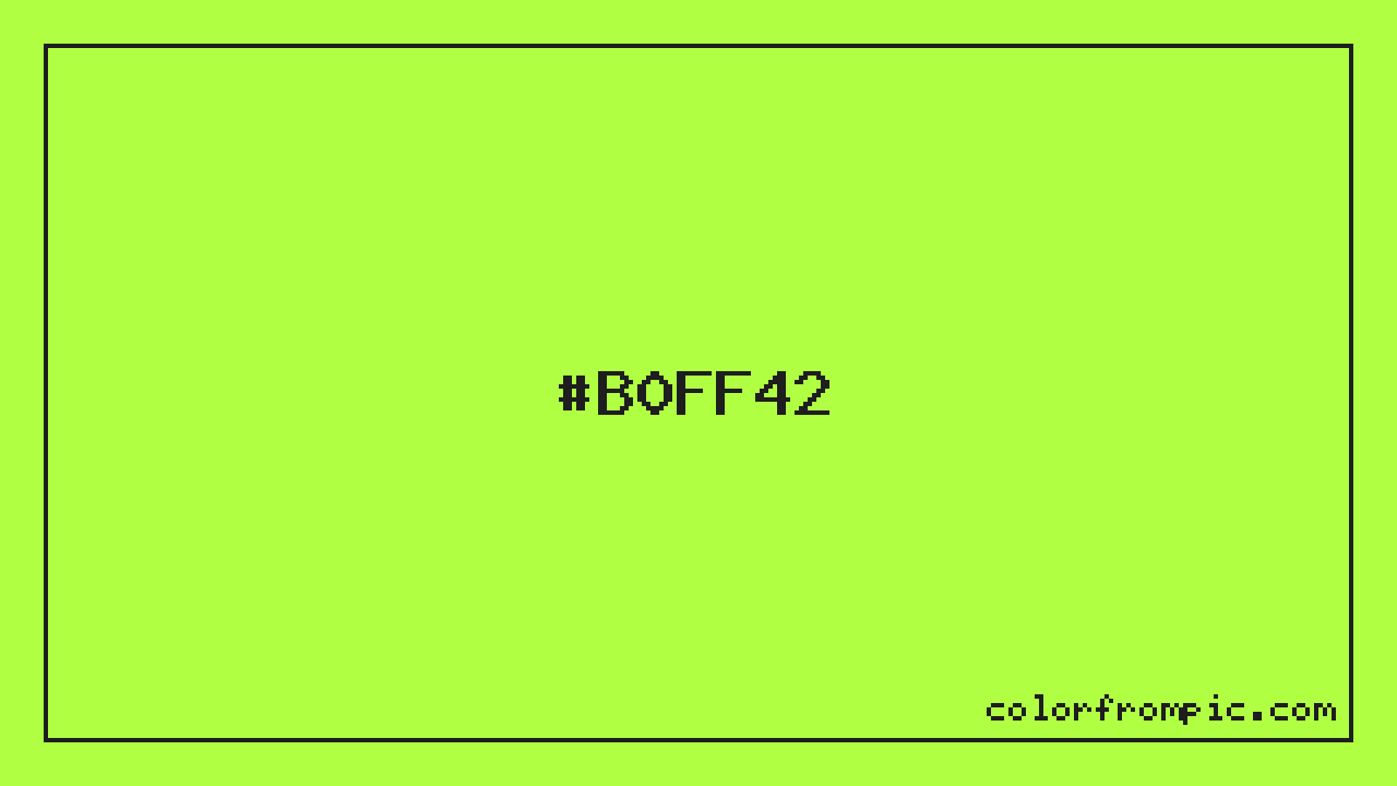 The hexadecimal color code #B0FF42 represents a light shade in the yellow family. In the RGB color model, this color is composed of 176 red, 255 green, and 66 blue, which translates to approximately 69% red, 100% green, and 26% blue. This makes it a highly saturated color with cool undertones that can evoke different emotional responses depending on its application.