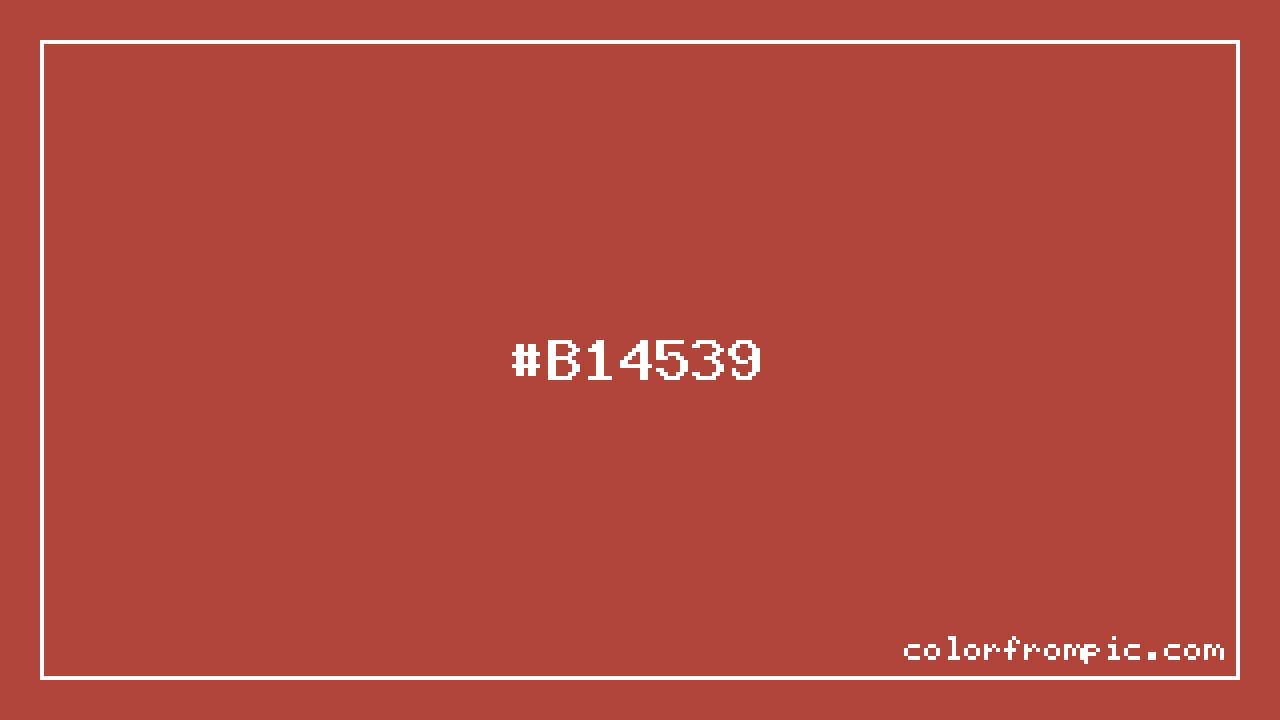 The hexadecimal color code #B14539 represents a medium shade in the red family. In the RGB color model, this color is composed of 177 red, 69 green, and 57 blue, which translates to approximately 69% red, 27% green, and 22% blue. This makes it a moderately saturated color with warm undertones that can evoke different emotional responses depending on its application.