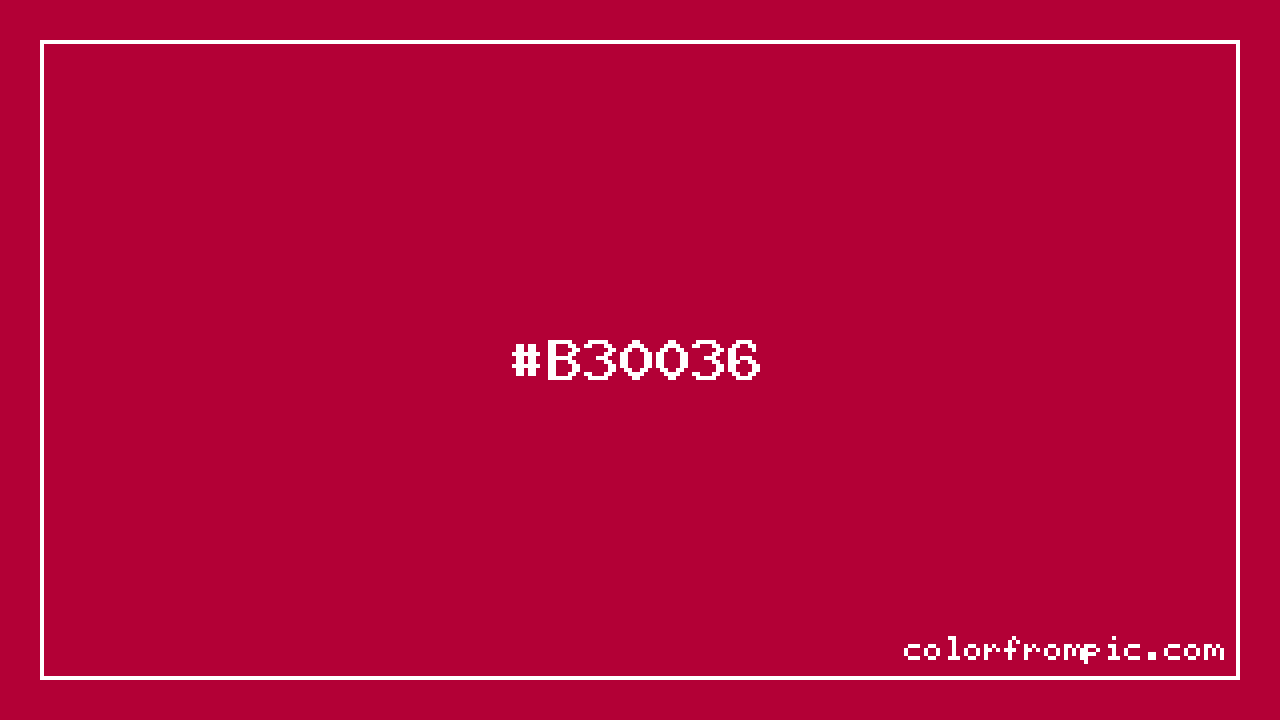 The hexadecimal color code #B30036 represents a dark shade in the red family. In the RGB color model, this color is composed of 179 red, 0 green, and 54 blue, which translates to approximately 70% red, 0% green, and 21% blue. This makes it a highly saturated color with warm undertones that can evoke different emotional responses depending on its application.